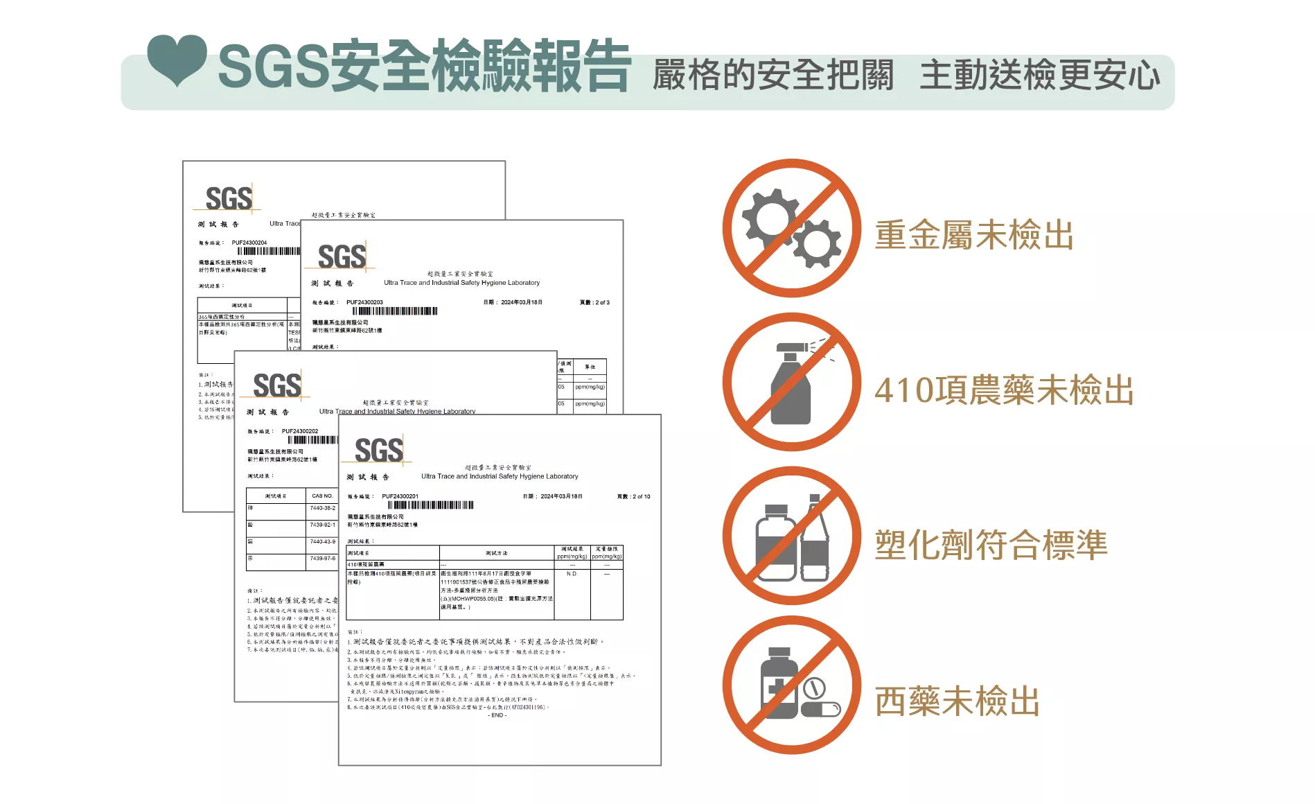 具SGS無農業殘留、重金屬、365項西藥及七項塑化劑檢驗合格報告。