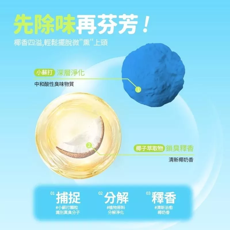 🌮 除味後再散香:淡淡椰香,告別微微臭味