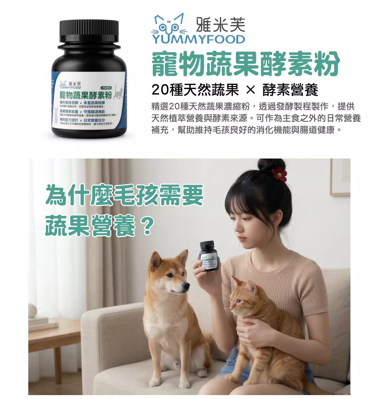 現代犬貓多以乾糧或罐頭為主食,蔬果攝取來源較少。